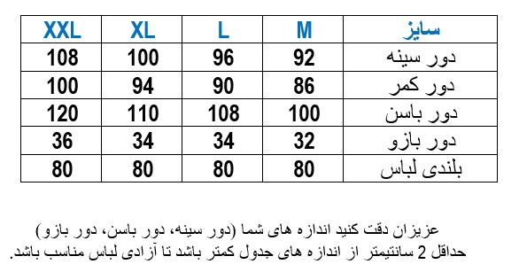 سایزبندی M,L,Xl,Xxl مناسب 36 تا 44